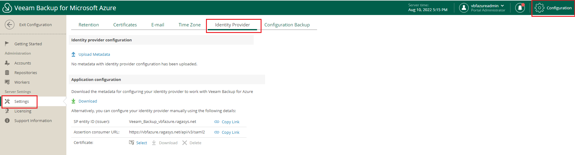 - Certificates, certificados web para Veeam Backup for Microsoft Azure: